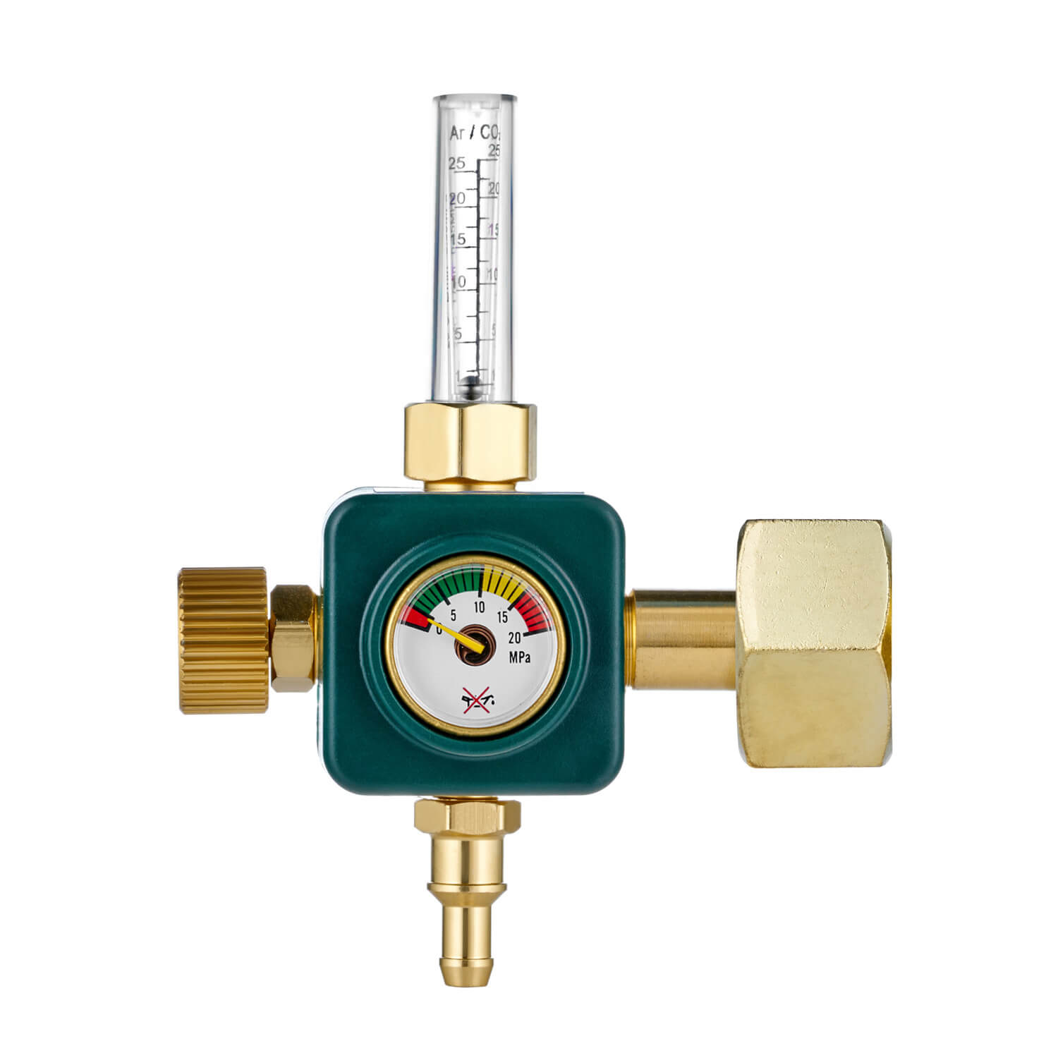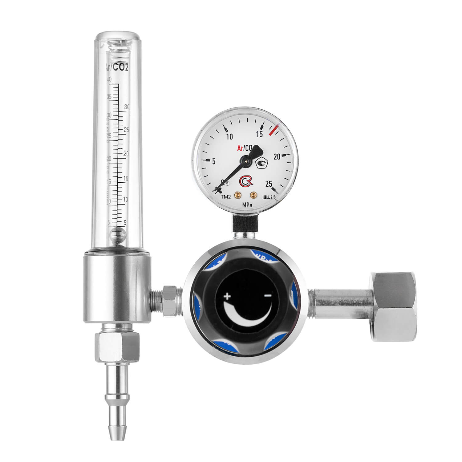 В корпус регулятора встроен подогреватель на 36В. Электроподогреватель обеспечивает работоспособность регулятора при низких температурах окружающей среды (до -30°С). Корпус регулятора изготовлен из алюминия (литье под давлением). Колба ротаметра изготовлена из прочного пластика, которая имеет две шкалы Ar/CO2.