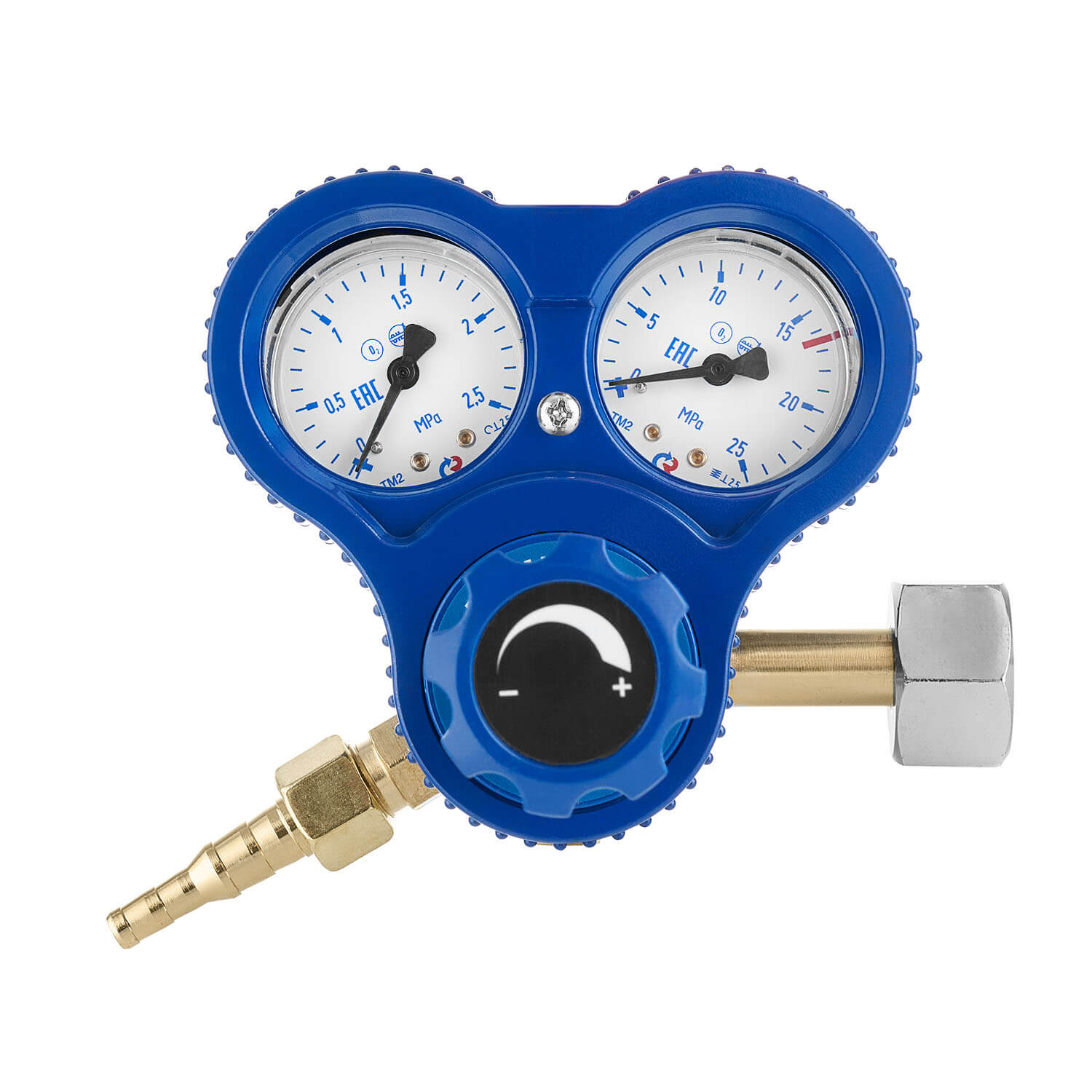Редуктор с литым латунным корпусом. На редуктор установлены эргономичные задающие винты. Корпус манометра укомплектован защитным бампером, который предохраняет устройство от механических повреждений. Редуктор применяется при интенсивной эксплуатации, также при эксплуатации на открытом воздухе в зимний период времени.